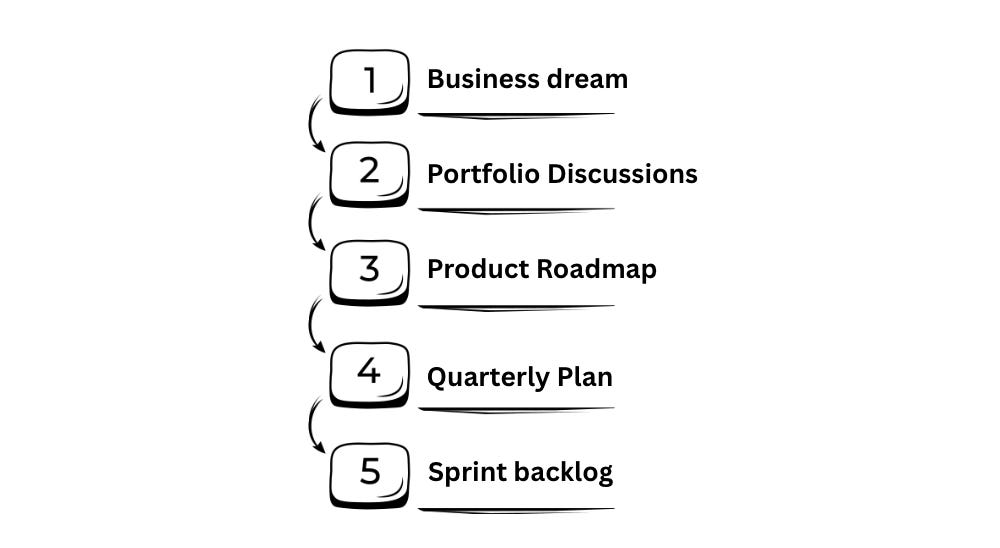 The deeper issue is the translation gap — the space between the dream at the top and the day-to-day work items at the bottom.
